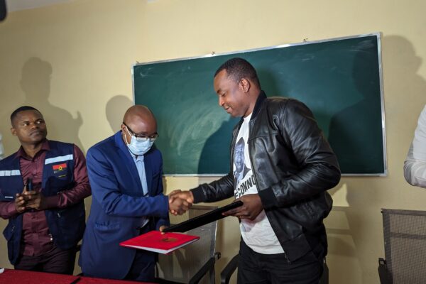 Os formandos do Centro Móvel de Formação do Belo Monte em Cacuaco e do Pavilhão de Formação de Artes e…